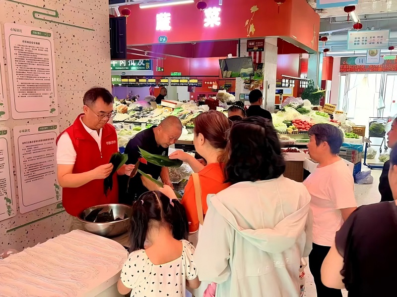 在市投集市未來(lái)路農(nóng)貿(mào)市場(chǎng),市場(chǎng)組織的“粽情端午,樂(lè)購(gòu)市投”活動(dòng),吸引了眾多周邊社區(qū)居民熱情參與,大家共聚一堂,包粽子、品美食、享優(yōu)惠,在歡聲笑語(yǔ)中感受傳統(tǒng)節(jié)日的魅力。