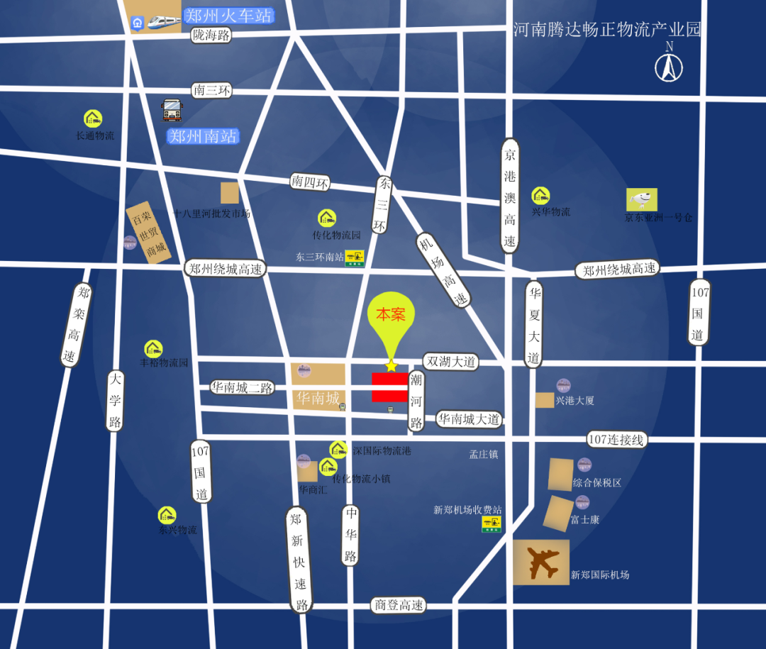 距離港區僅9公里,3分鐘抵達華南城,8分鐘抵達繞城高速,2分鐘抵達107國道,30分鐘抵達新鄭機場。緊鄰地鐵2號線華南城東站。